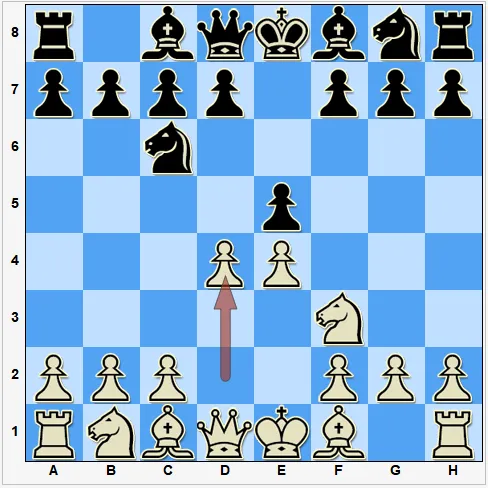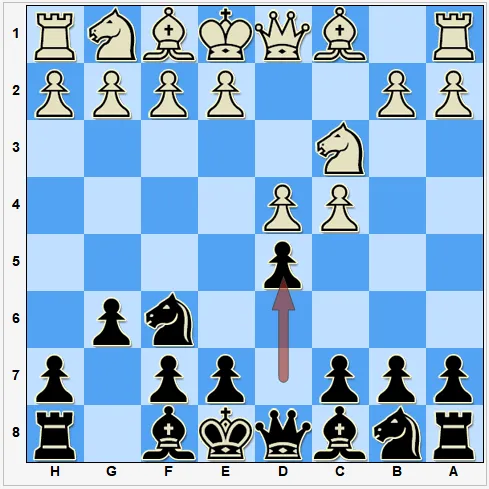 后兵开局现代变化黑方标志性走法是1...g6,2...c5,如下图: