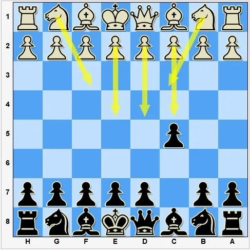 众所周知,开放性布局是双方都要快速掌控中心的开局,代表性的开局有苏格兰开局,意大利开局等,以下是苏格兰开局: