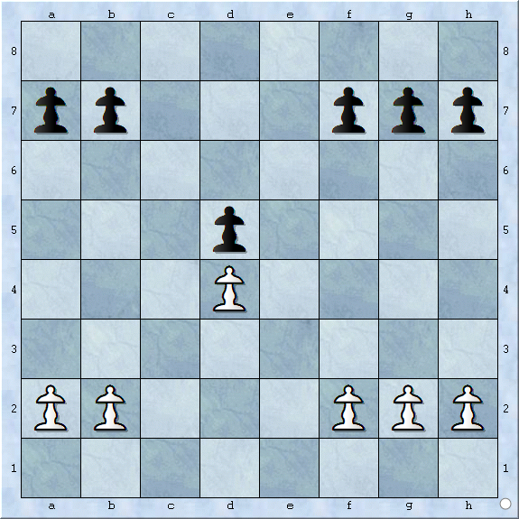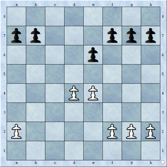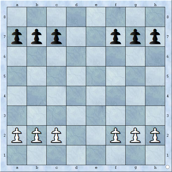 双方所有的中心兵都被对方封锁,使得车或象的线路也被阻挡,见下图: