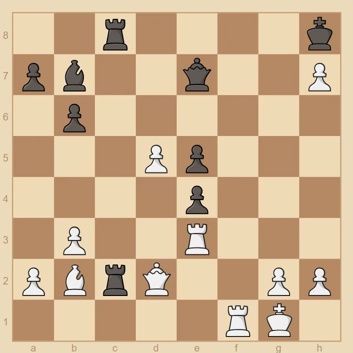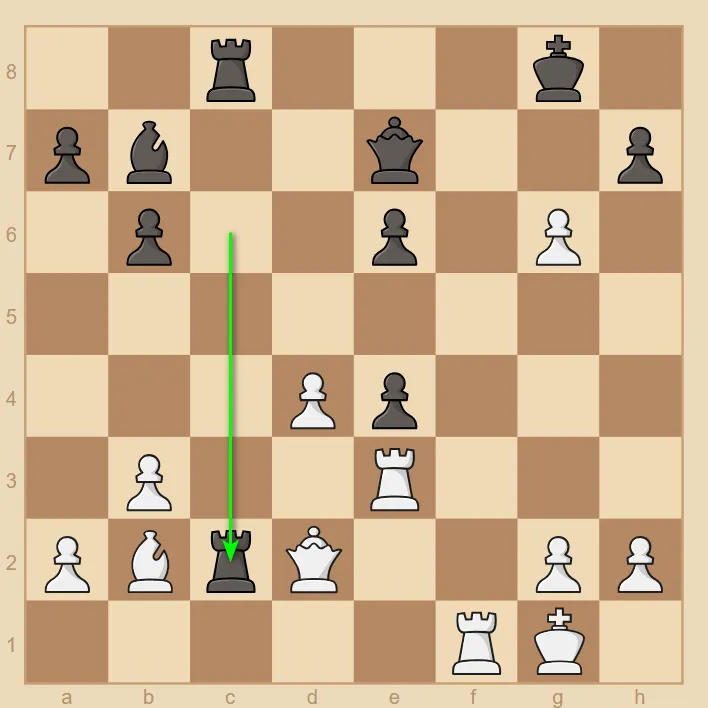 25.fxg6 Rc2