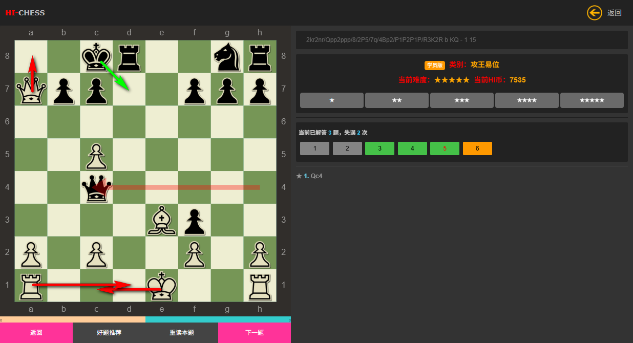 本战术题库比较特殊,局面尖锐,难度很高。是指在攻王或者被攻王的防守中,配合其它战术使用,并运用到易位。有可能是先易位再进攻/防守,也可能是先进攻/防守再易位。