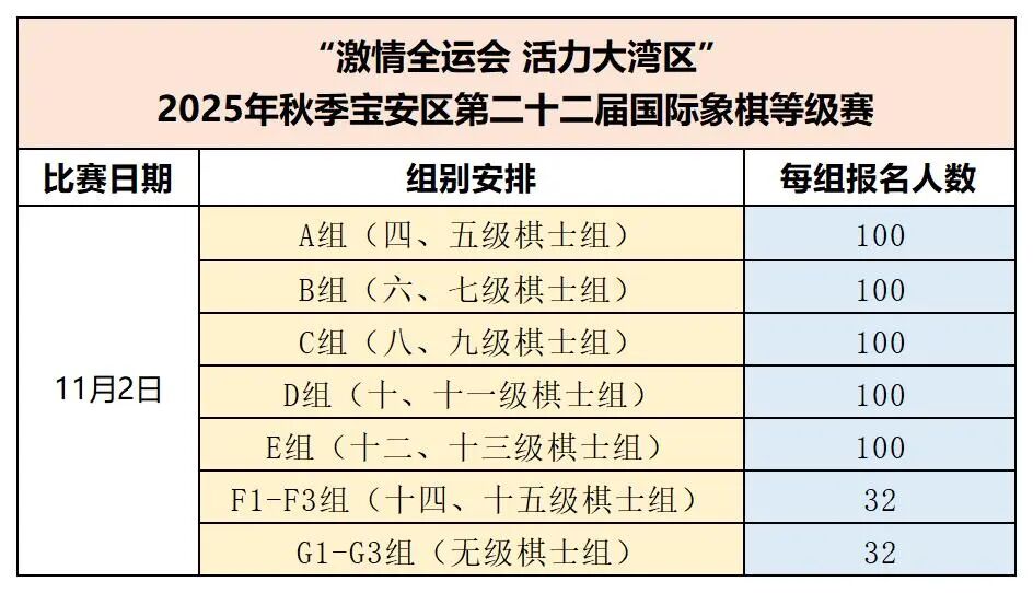 激情全运会 活力大湾区”-2025年秋季宝安区第二十二届国际象棋等级赛竞赛规程
