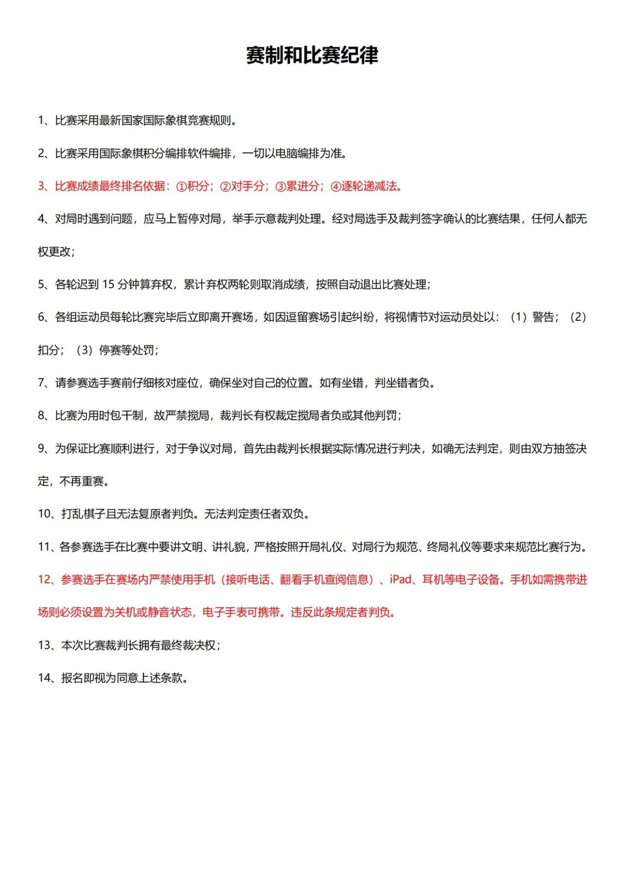 比赛赛制和比赛纪律