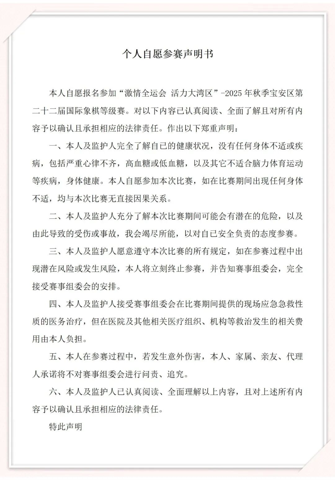 5、提交报名视为签署《个人自愿参赛声明书》。
