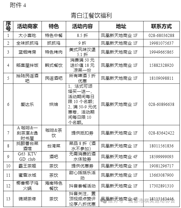4.青白江餐饮、住宿优惠表