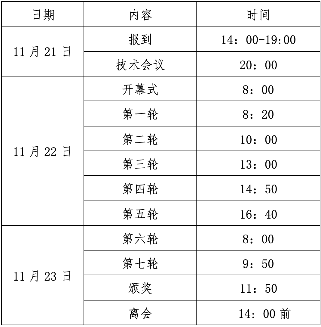 (三)各组比赛采用瑞士制或循环制,共赛7轮。