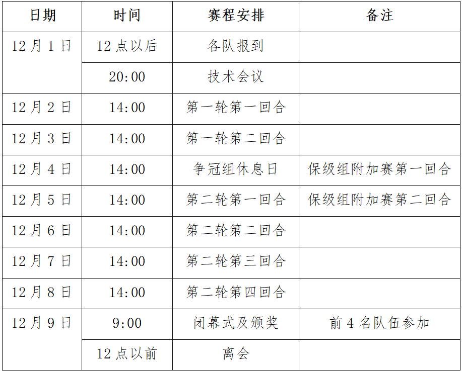 第二轮 冠亚军、三四名决赛(12月5日至8日):进行 4回合比赛。