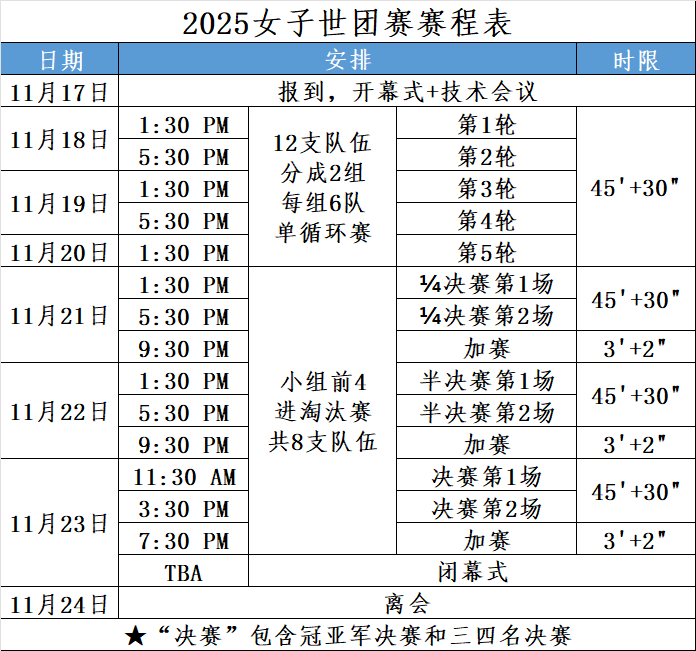 2025女子世团赛日程表