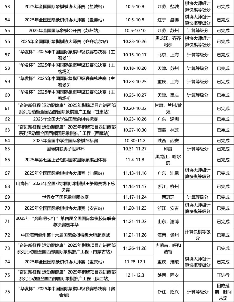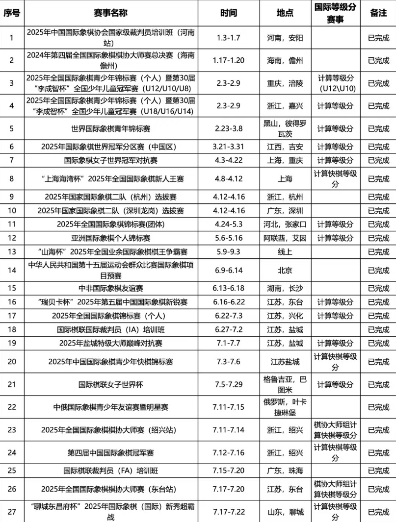 2025年国际象棋赛事日程表(12月版)