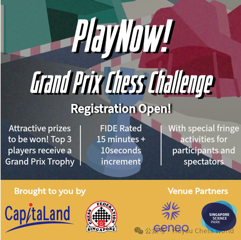 次推文介绍的是由新加坡国际象棋举办的快棋等级分赛,在1月31日-2月1日在Geneo新加坡科学园举办,此赛事是计算快棋等级分,若要参加慢棋等级分赛事,请查阅另一赛事链接2026新加坡东海岸月度国际象棋公开赛规程