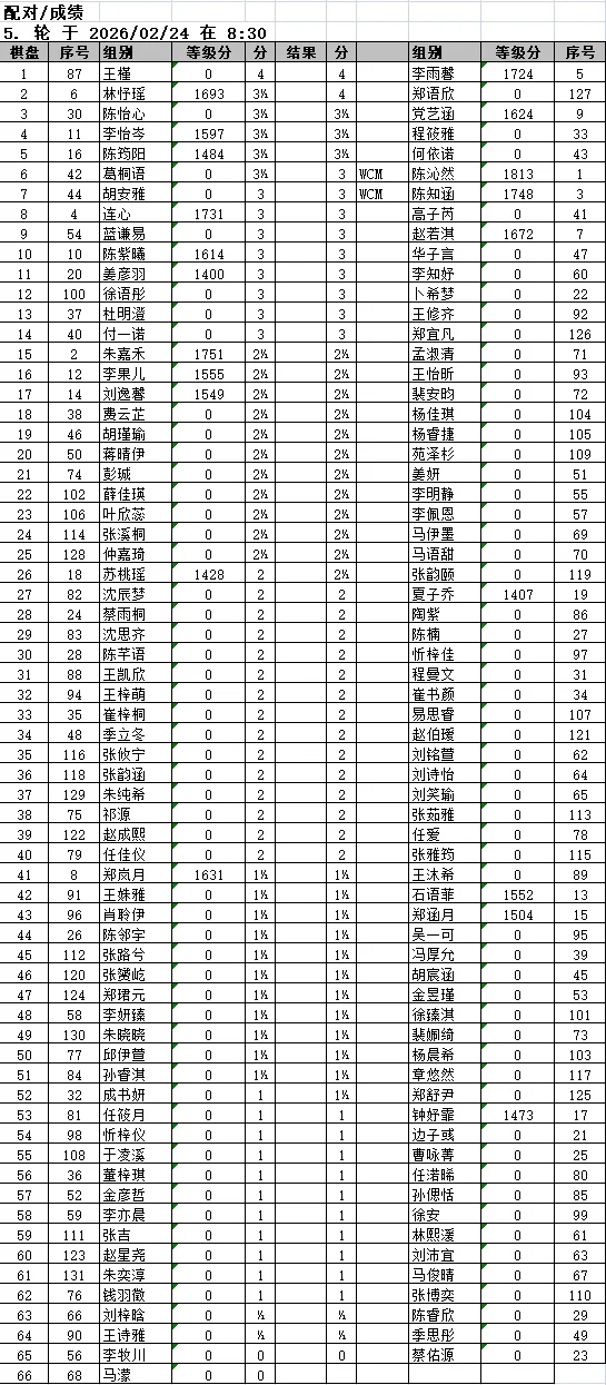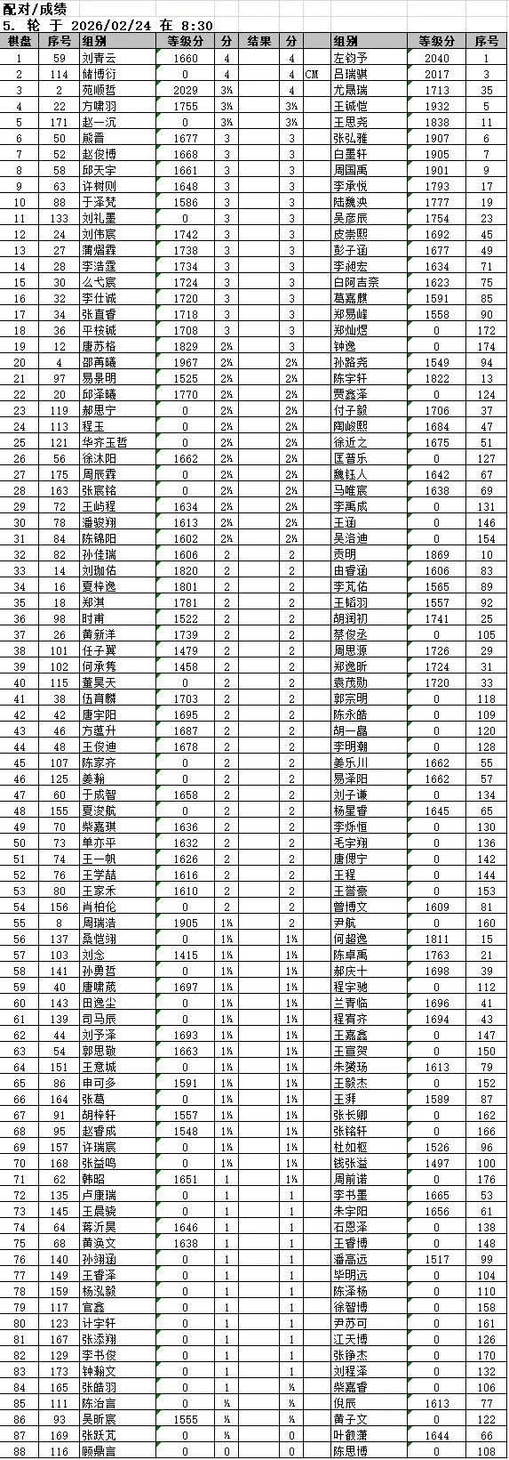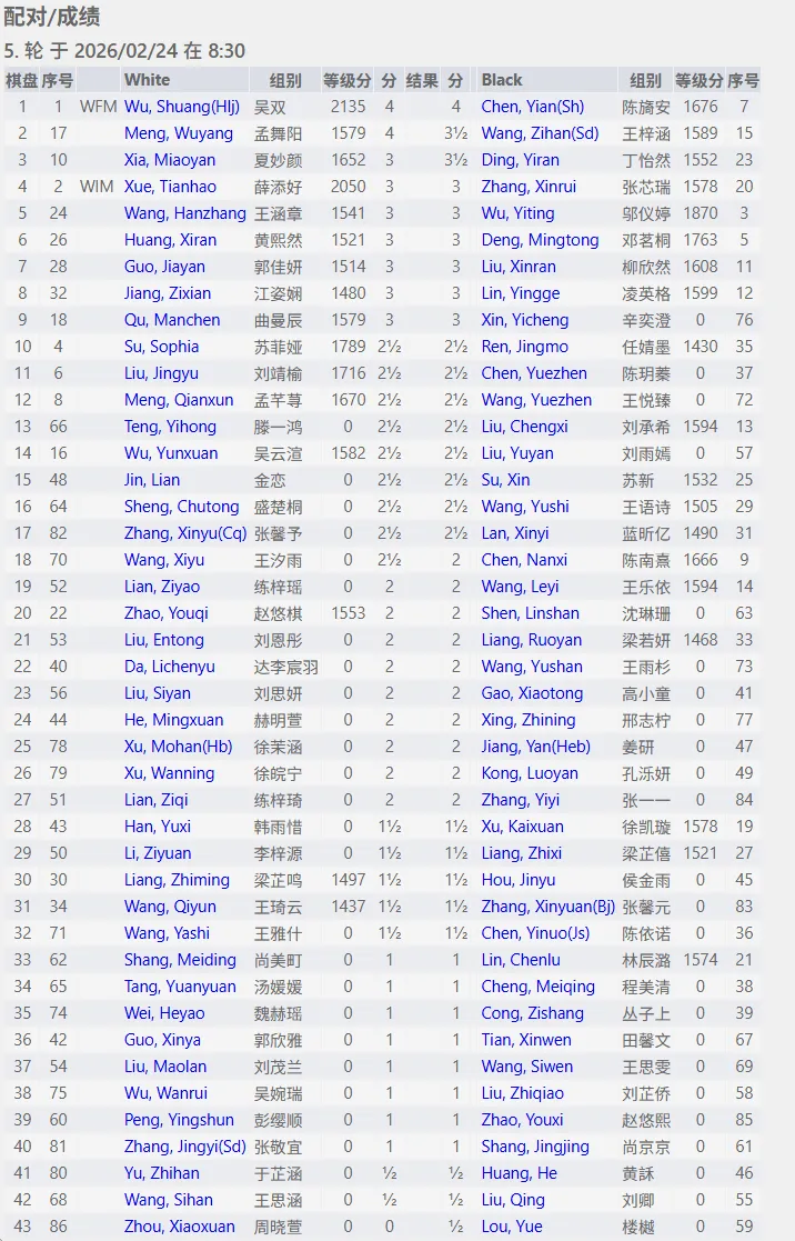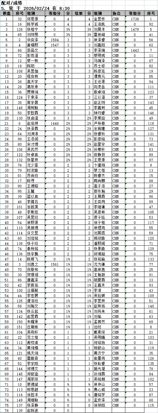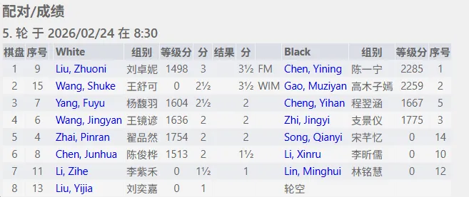 今日是2/24日,李杯进入第三天,以下为各组第5轮的编排表: