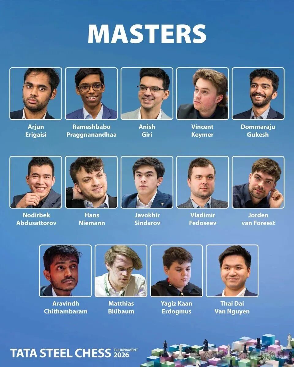 传奇赛事 2026 年塔塔钢铁国际象棋大师赛的参赛阵容于今日公布,阵容年轻且令人瞩目,由 19 岁的现任世界冠军古克什领衔。阵容另一端则是 31 岁的国际象棋特级大师吉里—— 他是 2023 年赛事冠军,也是本届赛事中最年长的参赛者。赛事主办方确认,这是该赛事 88 年历史上最年轻的一届参赛阵容!