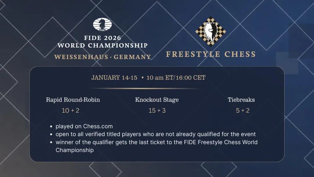 2026年1月14-15日,自由式国际象棋世界锦标赛资格赛在chess.com平台举行,乌兹别克斯坦棋手阿卜杜萨托洛夫一路高歌,获得优胜,拿到了世锦赛的最后一张入场券。