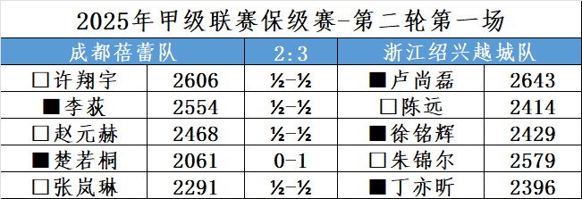 按照赛程安排,1月29日下午两点,双方将换先进行第二回合的争夺。这也是2025甲级联赛的最后一个比赛日。浙江队只需打平即可成功保级。如果成都队获胜,双方需通过超快棋加赛决出最后一个保级资格的归属。扫描上方二维码,可观看棋谱直播,查询比赛成绩。