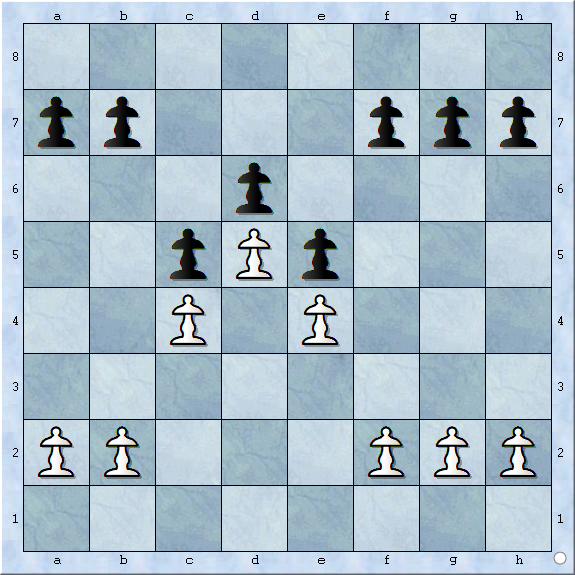 双方所有的中心兵都被对方封锁,使得车或象的线路也被阻挡,见下图: