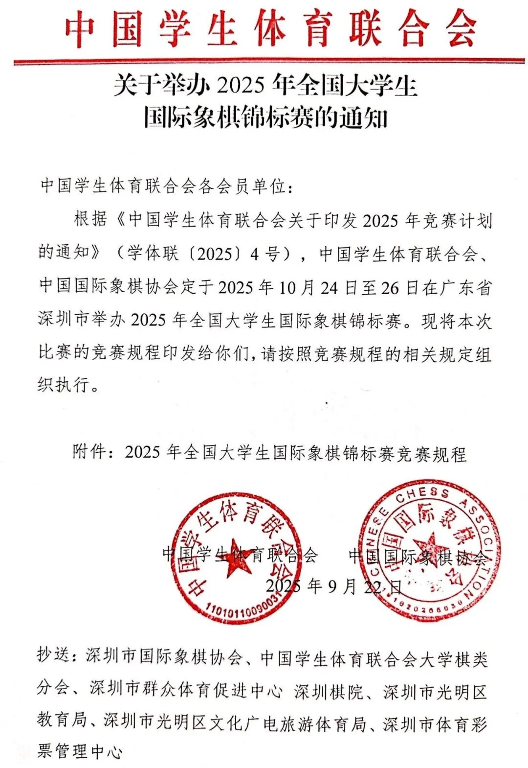 2025年全国大学生国际象棋锦标赛竞赛规程