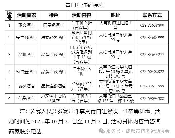 (七)参赛奖励:报名参赛即可凭参赛证件享受青白江餐饮、住宿等优惠(见附件4)。
