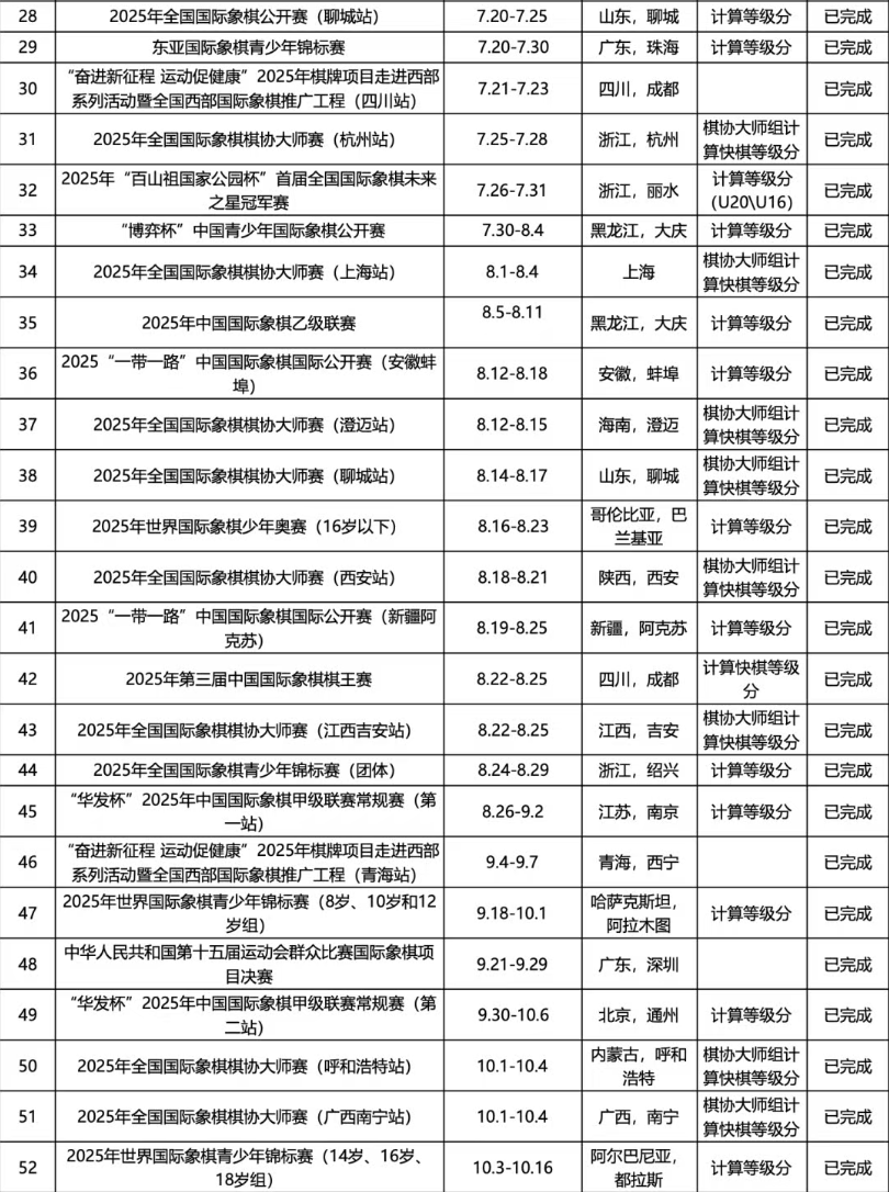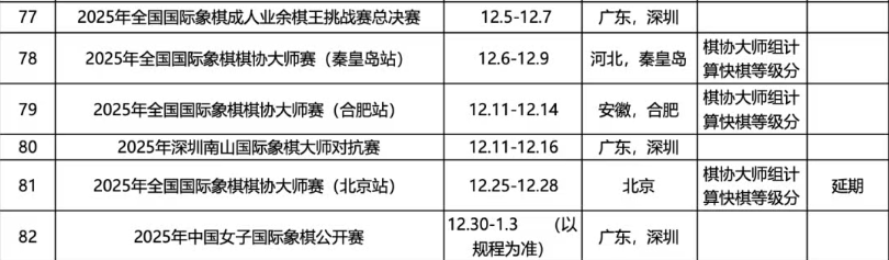 2025年国际象棋赛事日程表(12月版)