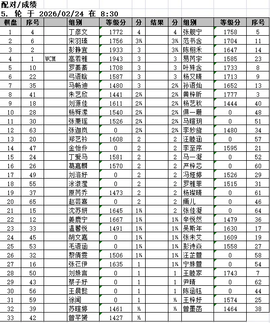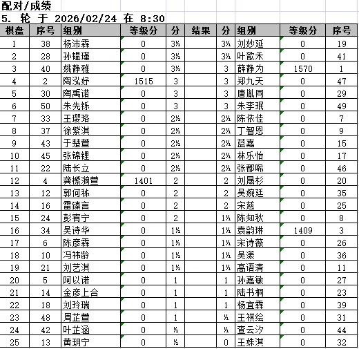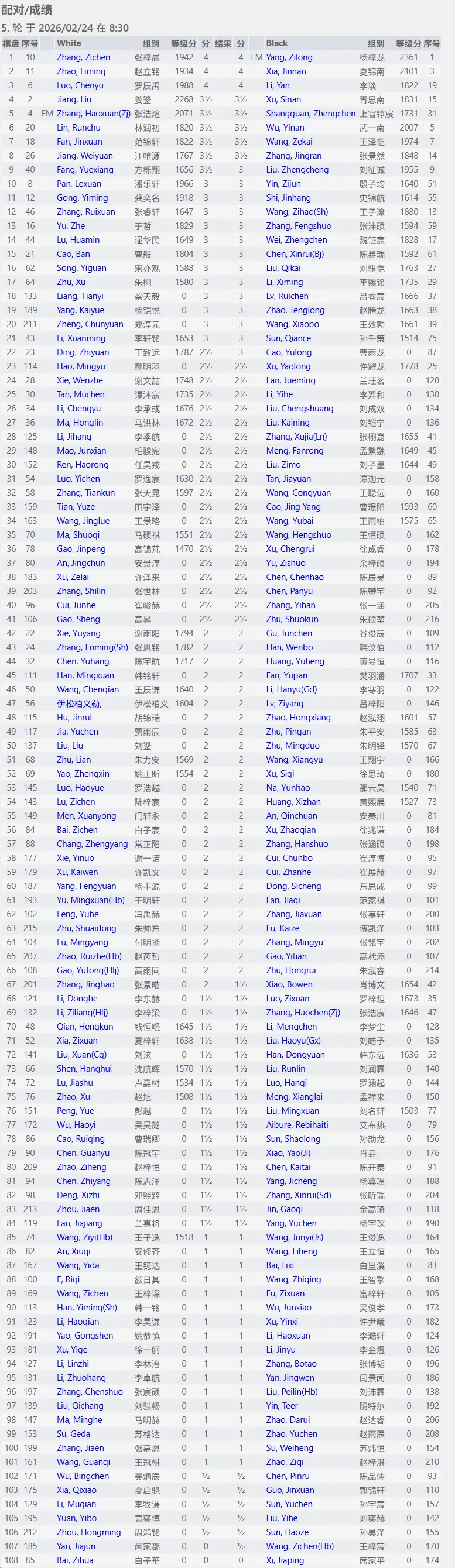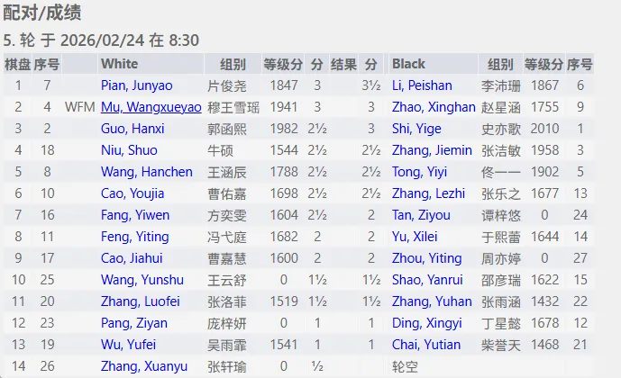 今日是2/24日,李杯进入第三天,以下为各组第5轮的编排表: