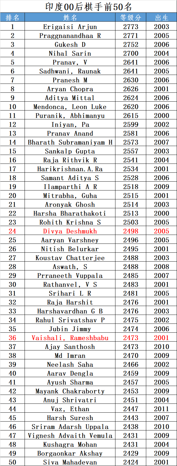 等级分 | 俄罗斯00后前50名(2025年10月)