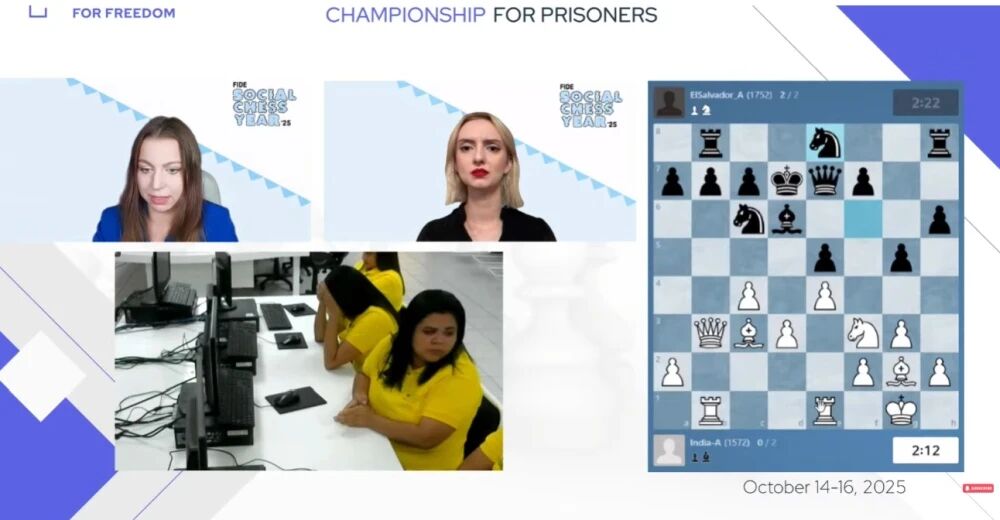 10月14-16日,第五届国际棋联洲际囚犯国际象棋网络锦标赛在chess.com平台圆满举行,经过三天的激烈角逐,印度队、萨尔瓦多队和伊朗队分别夺得男子组、女子组及青年组冠军。