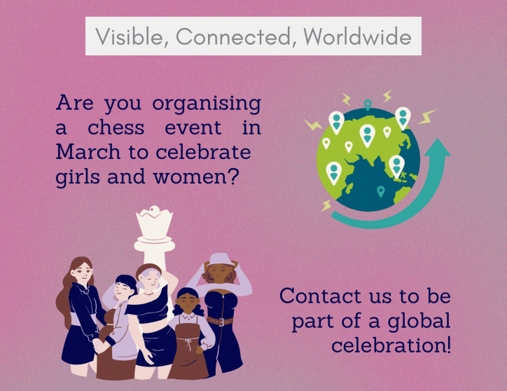 “可见、相连、全球”凝聚了我们的共同愿景:让女性在国际象棋中的身影更加闪耀,让各地社区与组织者紧密连结,也让世界看到正在各地绽放的精彩项目与行动。每一个活动,无论大小,都承载意义。通过这些努力,我们将推动国际象棋更广泛地被看见、被关注,加强全球联结,放大影响力,并共同铭记:我们正参与一项真正跨越国界的全球盛事!您是否正在筹划三月的女子国际象棋相关活动?无论是线上线下比赛、车轮战、大师讲座、培训课程,还是温馨的交流聚会,我们都非常期待您的分享!