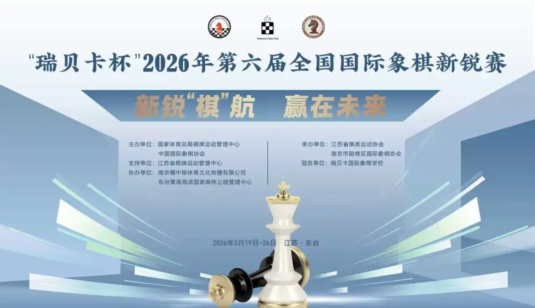 “瑞贝卡杯”2026年第六届全国国际象棋新锐赛将于明天(3月20日)在江苏省东台市黄海森林公园正式开赛。